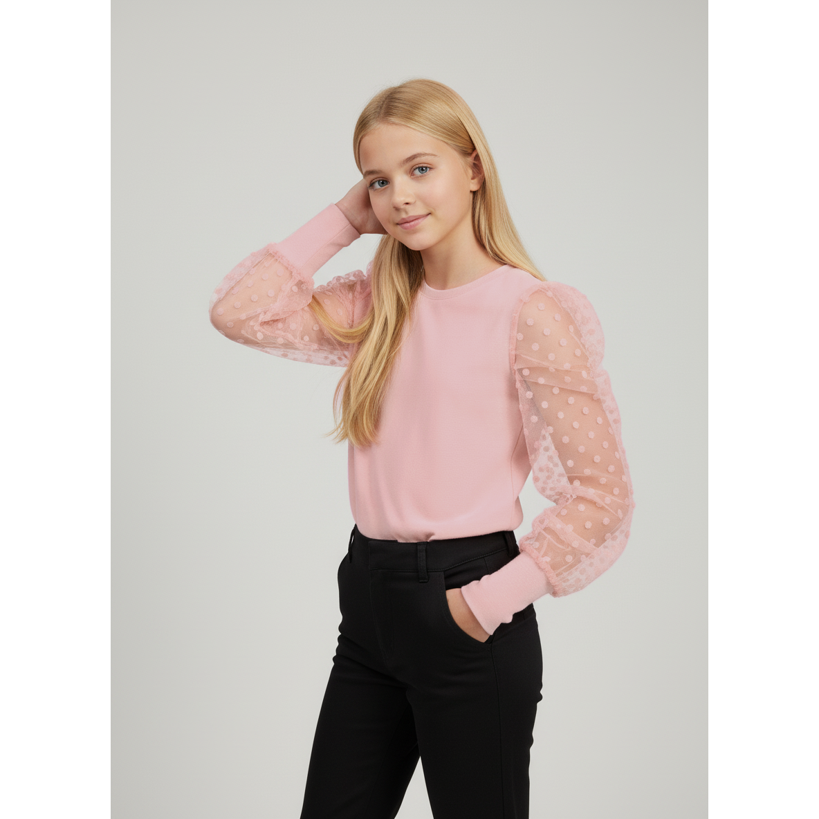 Блузка нарядная кулирка с лайкрой 2020100104 Купить одежду для девочек в Минске. Трикотажная фабрика Юлла предлагает купить детскую одежду оптом от 0 до 12 лет. Скидки постоянным клиентам. Доставка по всей Беларуси. 17.3 руб.