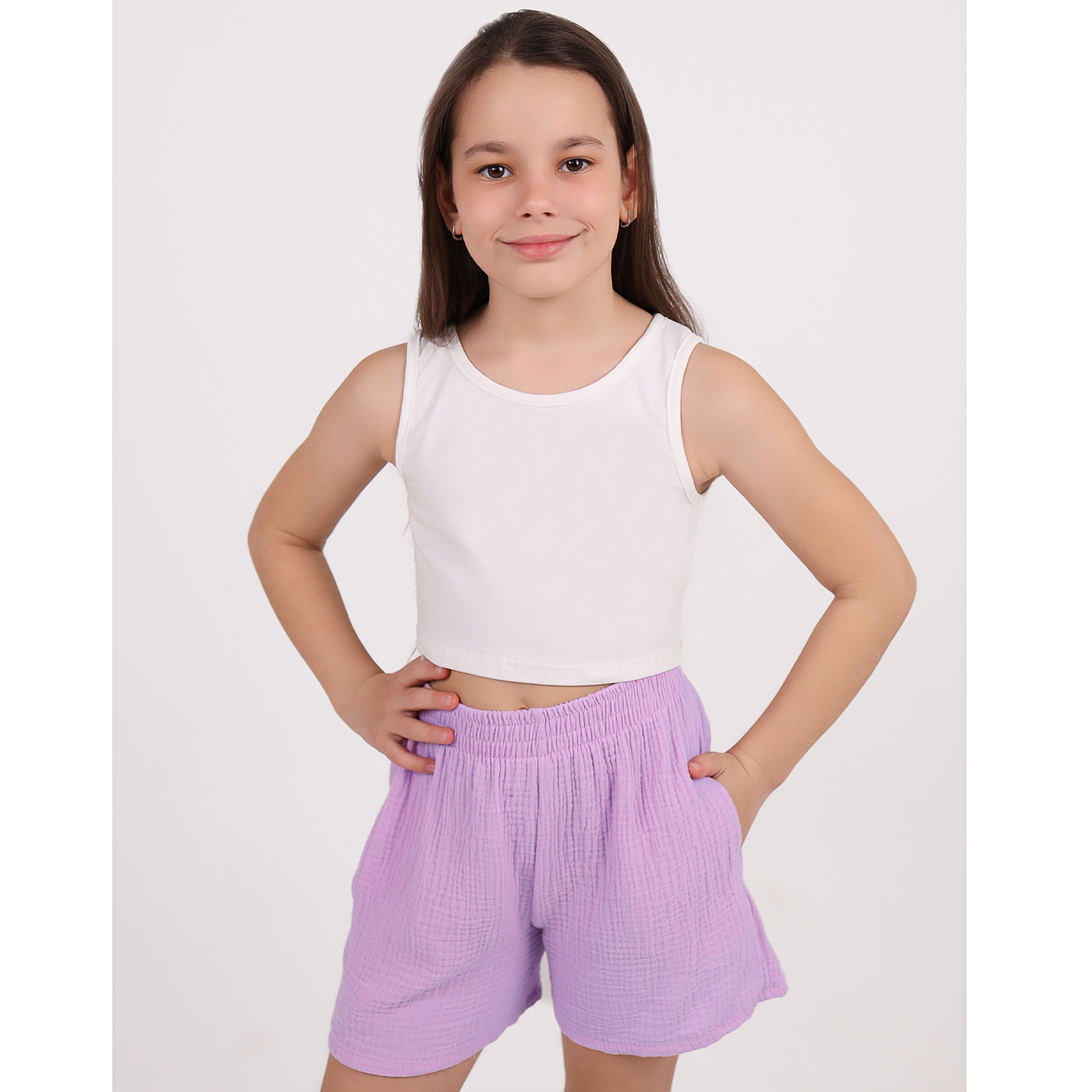 Комплект топ кулирка с лайкрой, шорты муслин 7015900104